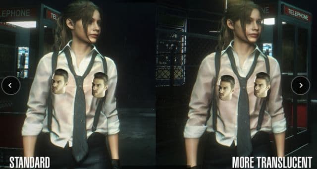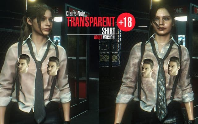 А вот пользователь под ником Jimmy AndresRG вспомнил выражение о том, что полуприкрытая нагота более соблазнительна, чем просто голое тело. Он сделал мод, который добавляет к «нуарному» костюму Клэр эффект мокрой рубашки, отчего она начинает просвечиваться. Предусмотрены четыре степени просвечиваемой рубашки, включая две «для взрослых».