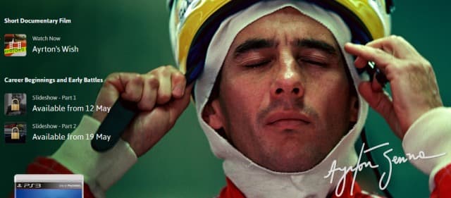 Айртон Сенна — трехкратный чемпион мира по автогонкам в классе Формула-1, считается лучшим гонщиком в истории Формулы-1. На сайте Ayrton Senna Tribute можно познакомиться с 20-минутным фильмом Ayrton's Wish, а 12 и 19 мая откроются слайд-шоу, которые позволят проследить жизненный путь гонщика.