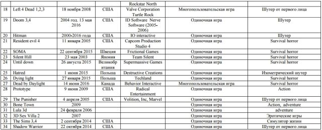 В список включены не только «древнейшие мамонты», про которых помнят лишь поклонники платформы GOG, но и игры The Sims 3 и 4, отдельно вырванные части различных франшиз, а также Left 4 Dead 3. Видимо, правительство не в курсе, что «число три не должно называться».
