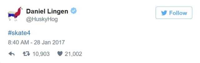 Не исключено, что компания Electronic Arts разрабатывает Skate 4 – продолжение популярной в своё время серии симуляторов скейтбординга. Старший менеджер по связям с общественностью Electronic Arts Даниэль Линген (Daniel Lingen) опубликовал очень короткое, но многообещающее, сообщение в твиттере - #Skate4.