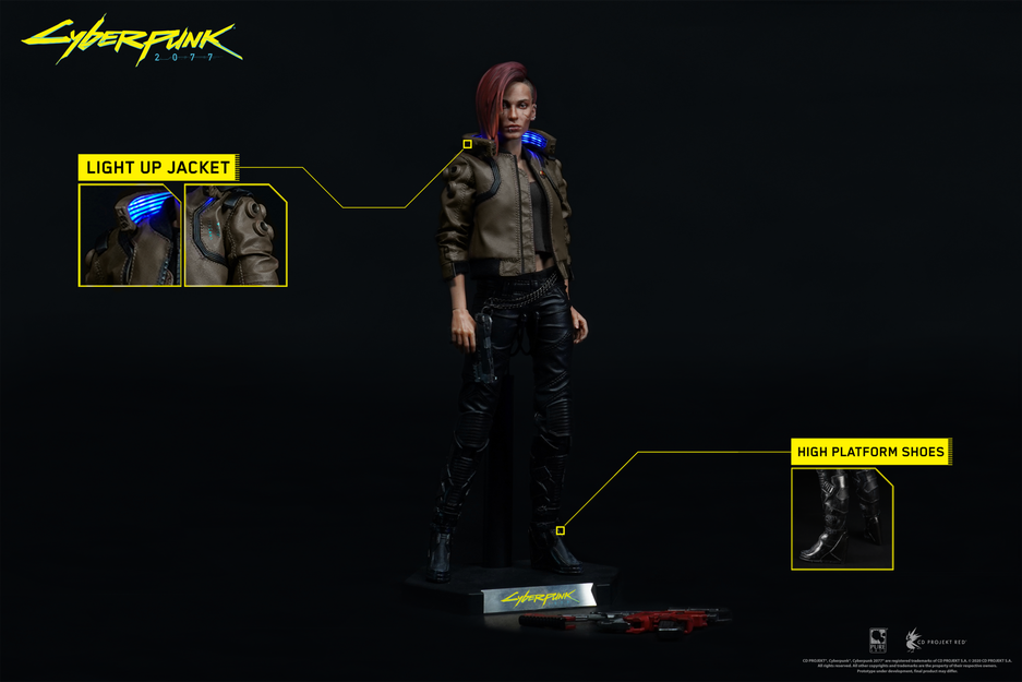 Теперь дизайнеры представили женский прототип с вниманием к самым мелким деталям, который украсит коллекцию фаната, ожидающего выход игры. Фигурка в масштабе 1/6 и около 30 см. высотой создана из ПВХ и АБС-пластика, расписана вручную, одета в реальную одежду: кожаную куртку со светящимся воротником, хлопчатобумажную рубашку, кожаные штаны, кожаные ботинки и оснащена пистолeтом-пyлeмeтом Kang Tao G-58 Dian.