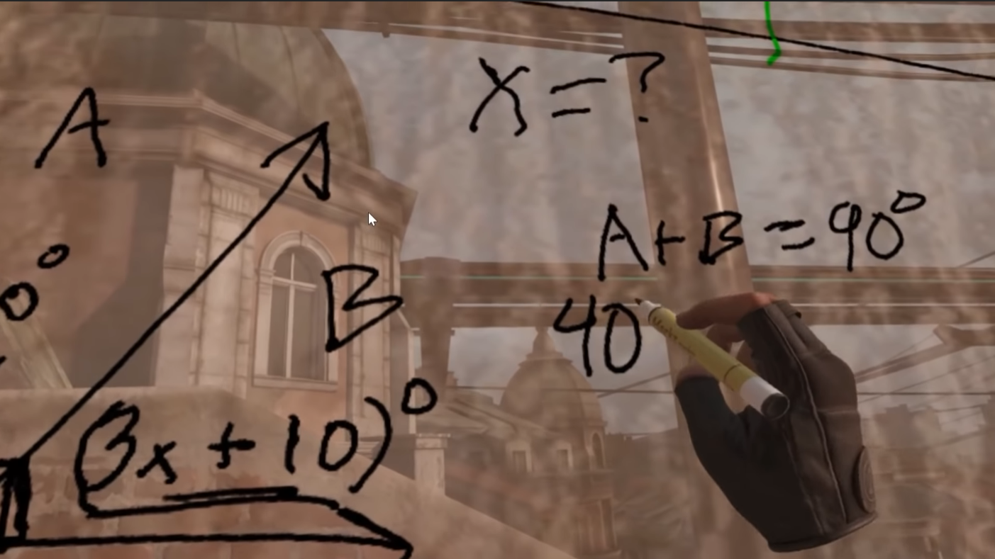 Использование игры, основанной на виртуальной реальности, в образовательных целях стало возможным благодаря характерной особенности – высокому уровню взаимодействия с миром. В качестве доски для учителя выступило стекло, на котором можно писать разноцветными маркерами. Интересно, что Чарльз Кумбер на протяжении всего урока делал вид, что работает не в игре, а из дома. Он даже представил ученикам своих «соседей» и «питомца». Убедитесь сами.