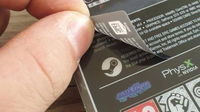 Очевидно, производители физических версий не успевали перепечатать тираж и ограничились наклейками с логотипом Epic Games Store.