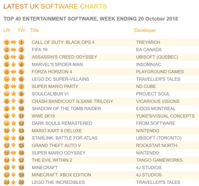 По данным компании GfK продажи физических версий игр в Британии в этом году снизились на 6,2% по сравнению с аналогичным периодом прошлого года. Причём падению не помешал тот факт, что значимые игры вроде Call of Duty: Black Ops 4 и Assassin's Creed Odyssey поступили в продажу раньше, чем в 2017 году. Новые части Call of Duty, Assassin's Creed и FIFA продаются в британской рознице хуже, чем их предшественники.