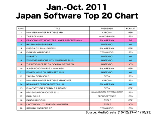 Японский Top 20 разделили между собой две пары - PS3 и PSP, а также Wii и DS.