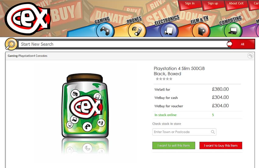 Британский магазин подержанных товаров CEX выставил на своем сайте пока неанонсированную домашнюю игровую консоль PS4 Slim, которая предлагается по цене 380 фунтов стерлингов.