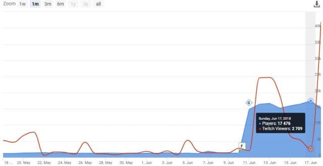 С 10 мая популярность Quake Champions значительно выросла. Дневной пик с 1500 игроков увеличился в десять раз и теперь в игре не увидишь меньше пяти тысяч пользователей. Напомним, что недавно в Quake Champions появились система расчленения и боты.
