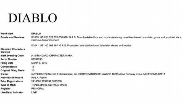 По новой данным в начале марта Blizzard зарегистрировала в Ведомстве по патентам и товарным знакам США новую торговую марку, которая относится к Diablo