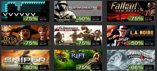 Сегодня вы можете приобрести, например, бандл Total War Mega Pack с 75-процентной скидкой за 199 руб. По такой же скидке отдают Zeno Clash (62 руб.), Operation Flashpoint Complete (199 руб.) . Sniper: Ghost Warrior продается со скидкой 80% за 179 руб., Monkey Island: Special Edition Bundle сегодня можно купить за 84 руб., L.A. Noire: The Complete Edition - за 299 руб.