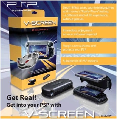 Компания RealView Innovations, офис которой расположился в Ирландии, официально сообщила о своих намерениях выпустить специальный аксессуар V-Screen для портативной консоли PSP, который позволит пользователям наслаждаться настоящей объемной картинкой.