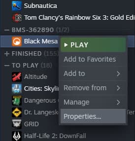Для запуска бета-версии нужно выбрать Black Mesa в библиотеке Steam, кликнуть правой клавишей мыши и выбрать опцию «Свойства». В появившемся меню в разделе BETAS надо выбрать public-beta.