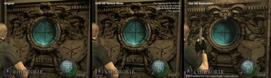 Однако качество текстур оказалась немного не таким, как ожидали поклонники. В данный момент два моддера, взяв за основу последнее переиздание, рисуют новые текстуры для Resident Evil 4 HD Texture Project . На следующих скриншотах вы можете убедиться, насколько текстуры Resident Evil 4 HD Texture Project лучше оригинала и Resident Evil 4 Ultimate HD Edition.