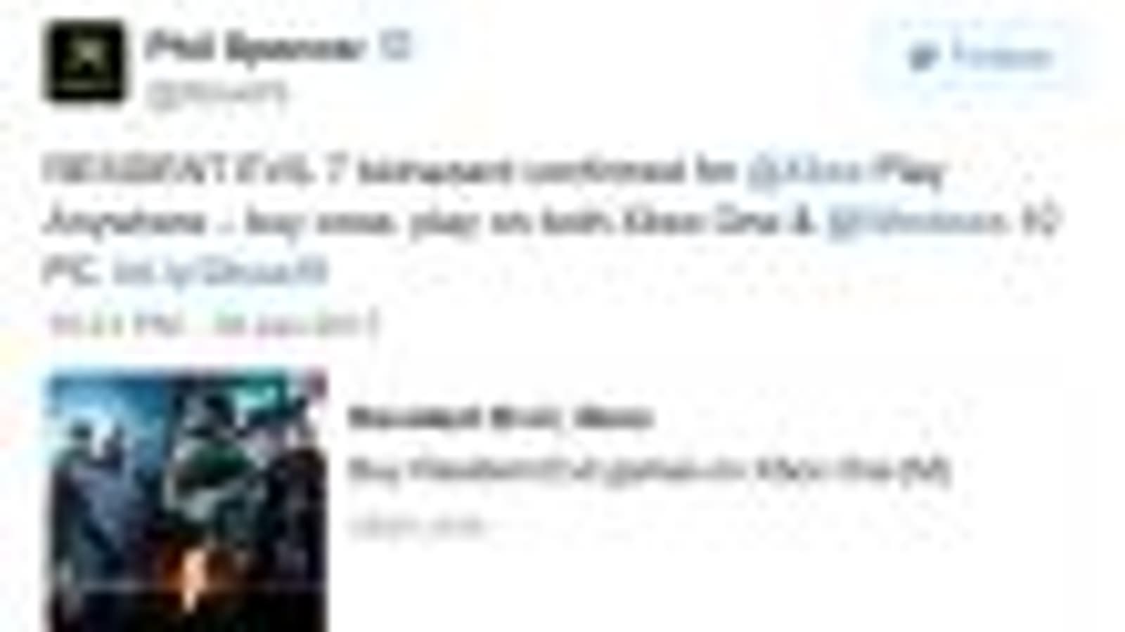 Глава подразделения Xbox Фил Спенсер сообщил, что хоррор Resident Evil 7 будет поддерживать программу Xbox Play Anywhere.