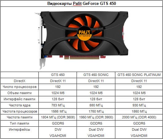 Компания Palit Microsystems Ltd, занимающаяся созданием графических ускорителей, представила новую линейку плат GeForce GTS 450 на архитектуре Fermi: GTS 450 1GB, GTS 450 1GB Sonic и GTS 450 1GB Sonic Platinum. Новые модели Palit GTS 450 уже поступают на склады магазинов по всему миру.