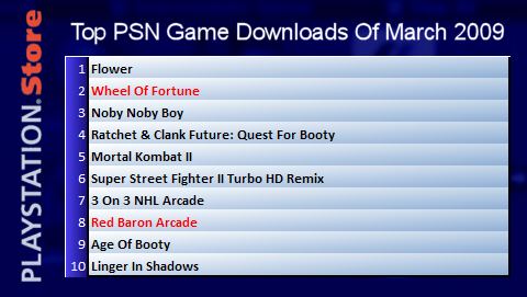 В прошлом месяце в PlayStation Store появилось семь новых игр - Watchmen: The End Is Nigh, Astro Tripper, Buzz Junior: Jungle Party, Red Baron Arcade, Wheel Of Fortune, Worms и Burn Zombie Burn. Однако всего две их них смогли пробиться в первую десятку.