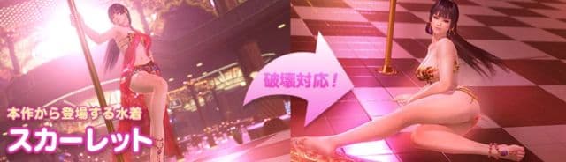 В частности, некоторые купальники на PS4 не будут рваться. Ещё обладатели PS4 не увидят «повреждений» на некоторых костюмах из комплектов DLC. Пример реализации «повреждений» представлен ниже. «Повреждения» делают наряды более откровенными.