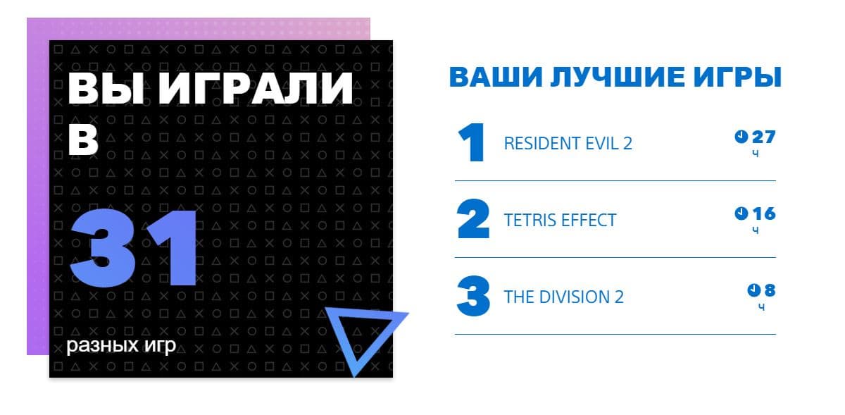 Сервис показывает, во сколько игр в прошлом году вы сыграли, какой был ваш любимый жанр, в каких проектах вы провели больше всего времени, а также сколько и каких трофеев вы заработали.