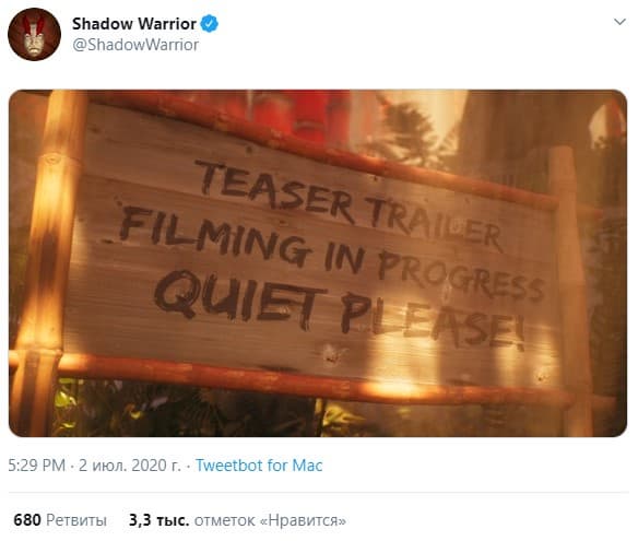 В официальном твиттере Shadow Warrior говорится, что съёмки тизера новой игры серии идут полным ходом. Условную Shadow Warrior 3 явно анонсируют в ближайшее время, хоть официального подтверждения продолжения пока нет.