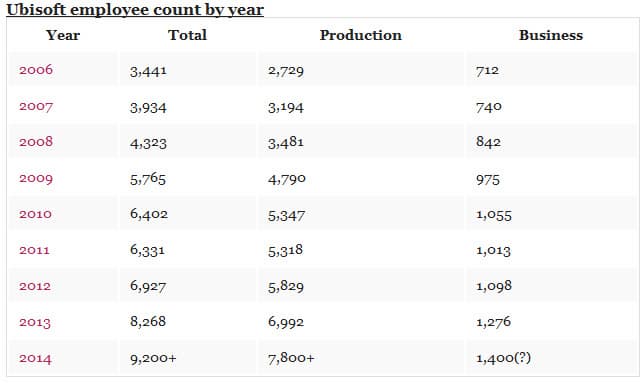 За последние восемь лет штат Ubisoft увеличился чуть ли не в три раза, почти на шесть тысяч человек, при этом компания занимает третье место в индустрии, если говорить о финансовой выручке.
