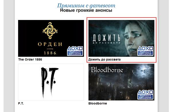 Компания Sony провела рекламную рассылку, сообщив об играх, которые были анонсированы и продемонстрированы на этой неделе в ходе немецкой игровой выставки gamescom 2014.