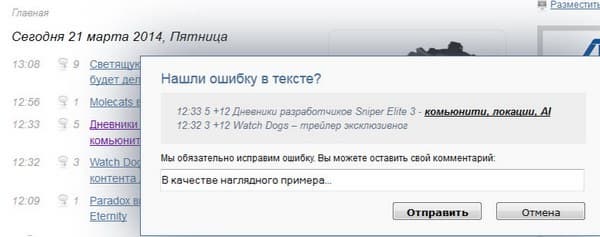 Принцип ее работы предельно прост: если вы увидели в тексте опечатку или какую-то неточность, достаточно выделить слово или фразу и нажать Ctrl+Enter, после чего соответствующее сообщение будет отослано редакторам Gametech.ru.
