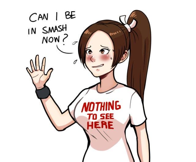 Nintendo утверждает, что Мэй Ширануи нет в Smash, поскольку это игра для всех возрастов. Но, я думаю, мы знаем истинную причину: Из-за неё Луиджи чувствует себя некомфортно.
