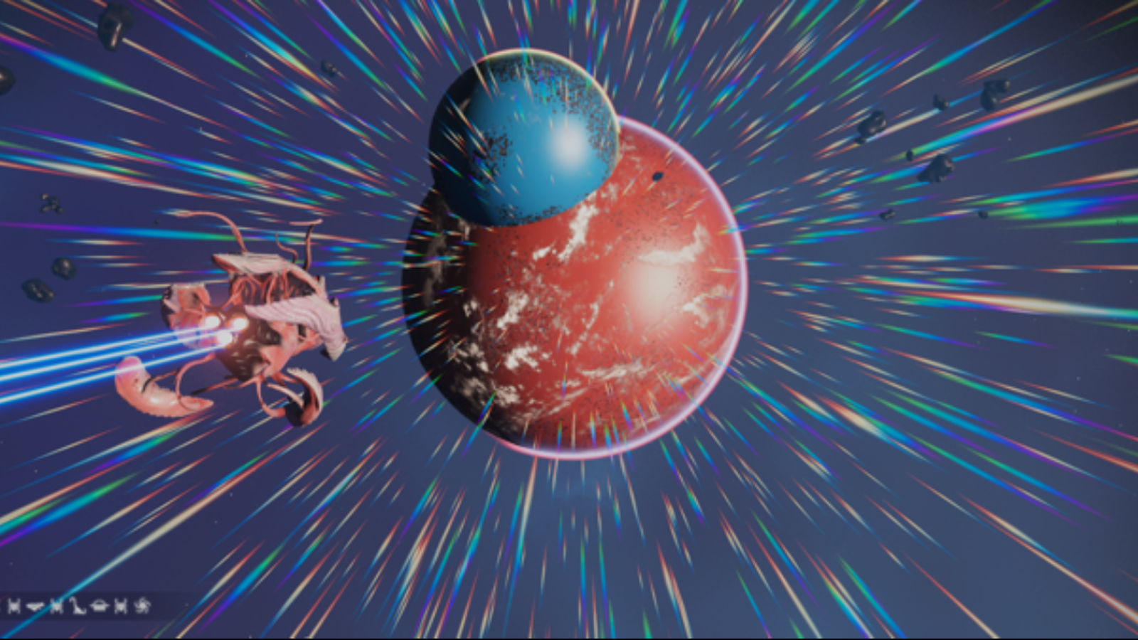 Пользователь Reddit с ником «pineapplenate», исследуя виртуальные просторы No Man's Sky, сделал интересное открытие – он наткнулся на объединённые в одно целое планеты. Игрок опубликовал картинку, на которой изображено слияние двух миров, а в видео доказал, что с одной планеты на другую можно перепрыгивать.