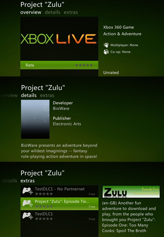На сайте vgn365.com опубликовали скриншоты, полученные на debug-версии Xbox 360, которые указывают на то, что BioWare делает эпизодическую игру Project Zulu для домашней консоли от Microsoft.
