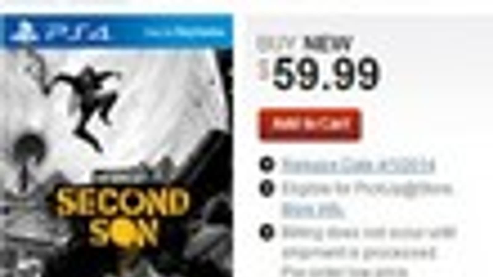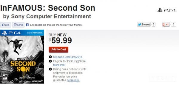 Согласно информации, указанной на сайте известной американской торговой сети GameStop, поступление в продажу нового приключенческого экшена inFamous: Second Son на территории Северной Америки состоится 1 апреля следующего года.