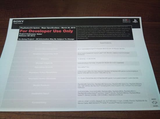 В Сети появилась следующая фотография, на которой предположительно запечатлены характеристики новой домашней консоли PlayStation 4 или Orbis.