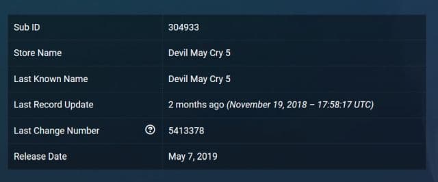 Информация о том, что Devil May Cry 5 выйдет 7 мая, появилась в сервисе SteamDB.