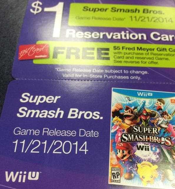 Если верить следующей карточке предварительного заказа, то поступление в продажу версии нового файтинга Super Smash Bros. для консоли Wii U состоится 21 ноября.