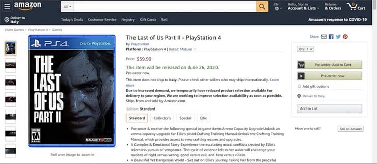 На сайте торговой сети Amazon на странице игры The Last of Us Part II ненадолго появилась дата выхода проекта – 26 июня этого года. Вскоре дату изменили на заглушку – 31 декабря 2020 года. Однако бдительные пользователи успели сделать скриншот.