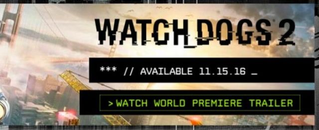 На сайте IGN ненадолго появилась реклама боевика в открытом мире Watch Dogs 2 с указанием точной даты выхода проекта. Если верить этой информации, то игра поступит в продажу 15 ноября этого года. Также на картинке изображён мост «Золотые ворота», который расположен в Сан-Франциско. Не исключено, что действие Watch Dogs 2 будет разворачиваться в этом мегаполисе. Дебютный трейлер Watch Dogs 2 ожидается в среду.