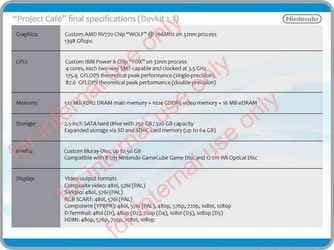 На сайте Gamertag Radio опубликовали информацию об аппаратной начинке Project Cafe, которая якобы была взята из документа, предназначенного для внутреннего использования Nintendo.