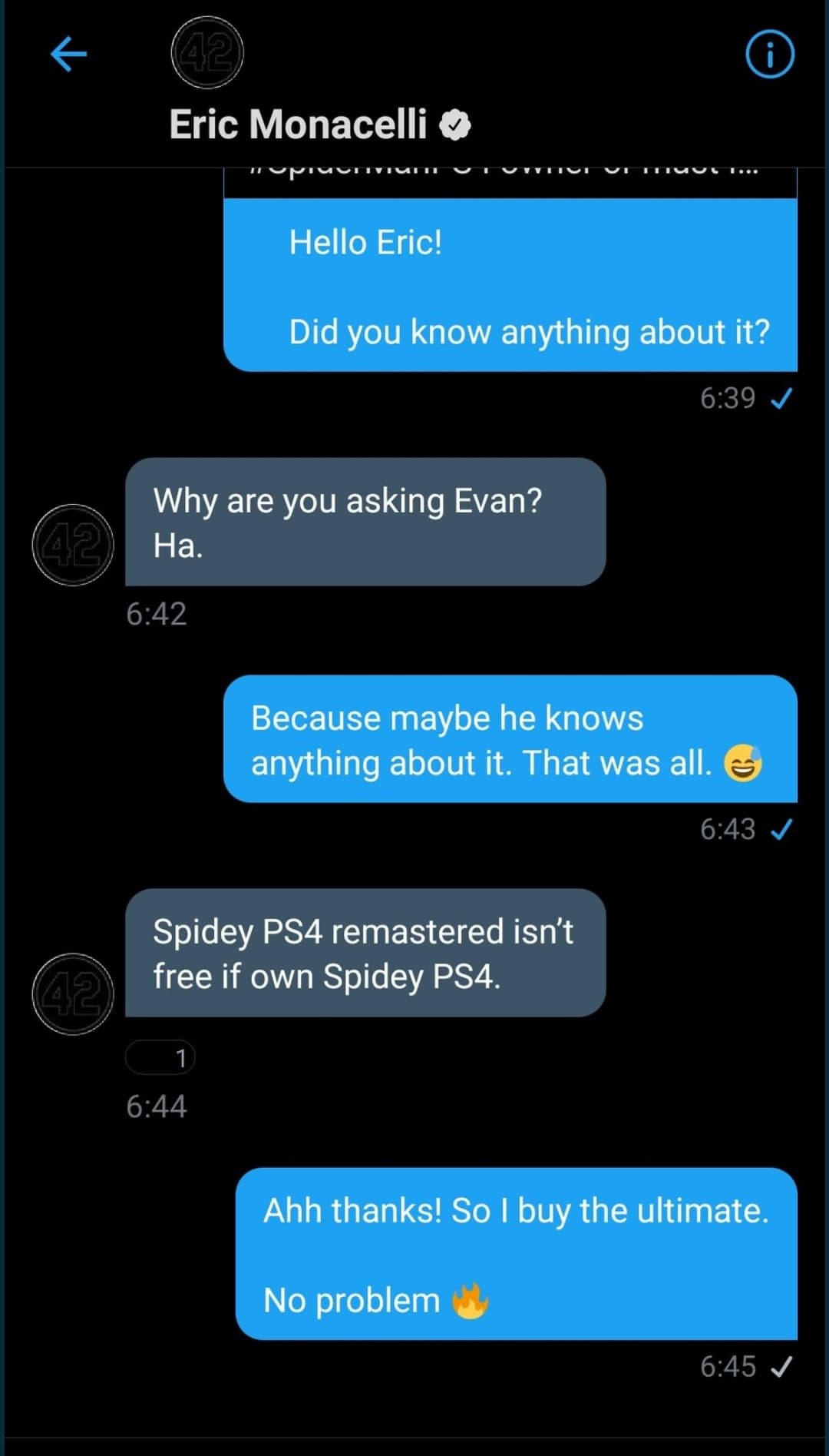 Один из руководителей Marvel Games Эрик Моначелли отметил, что обладатели Marvel's Spider-Man для PS4 не получат ремастер для PS5 бесплатно. Вероятно, версия Marvel's Spider-Man для PS4 будет работать на новой консоли в режиме обратной совместимости без серьёзных улучшений.