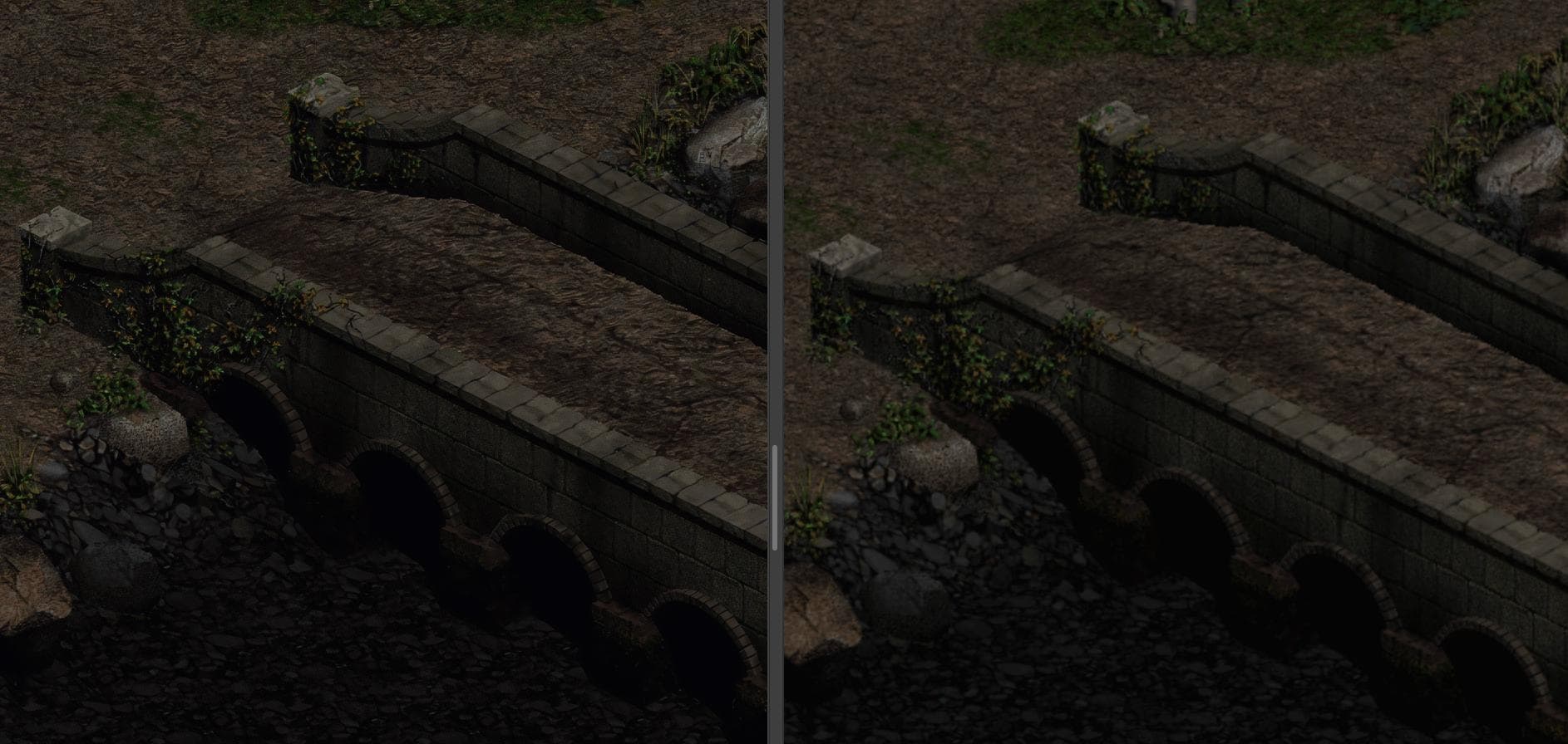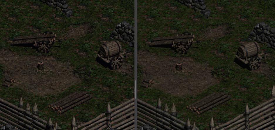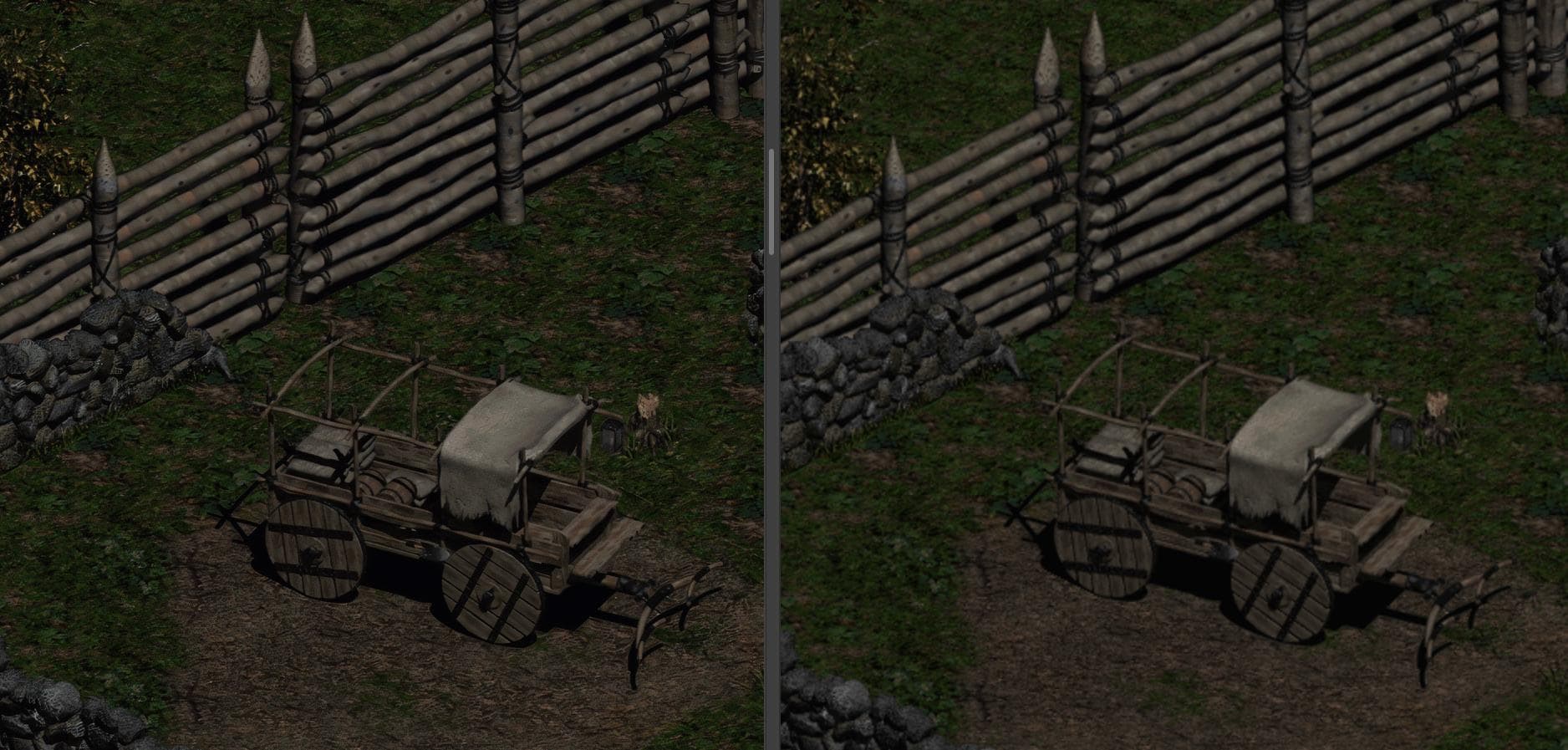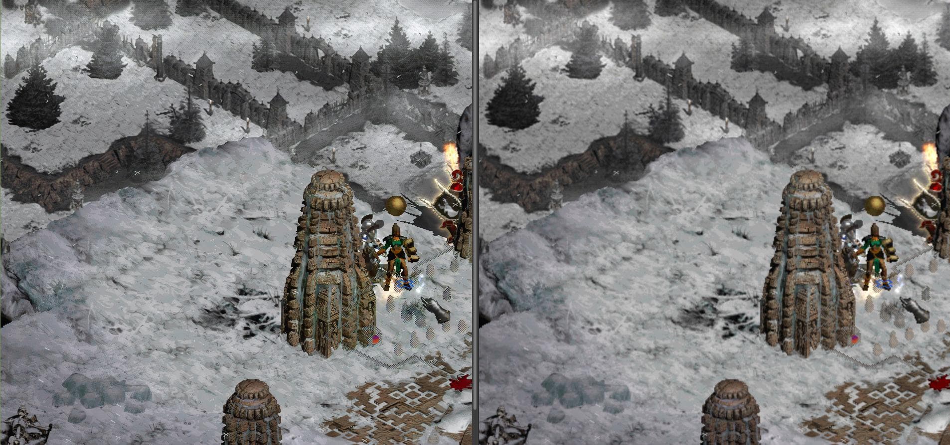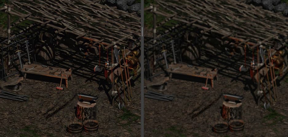zomprd опубликовал некоторые скриншоты, в основном из первой локации - Rogue Encampment. Слева – ремастер, справа – оригинал.