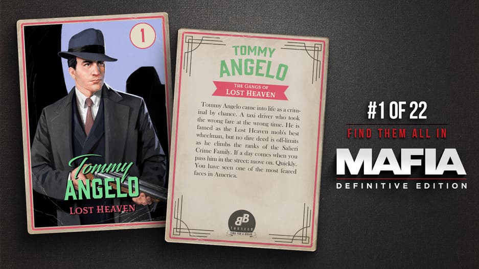 В ремейке первой части Mafia можно будет найти «старинные сигаретные карточки» с описанием ключевых персонажей трилогии. Пока нам показали карточку протагониста первой части Томми Анджело. Если верить опубликованной разработчиками картинке, то всего в игре 22 карточки.