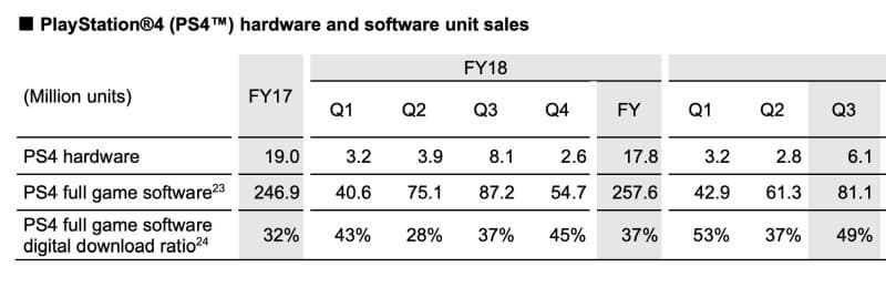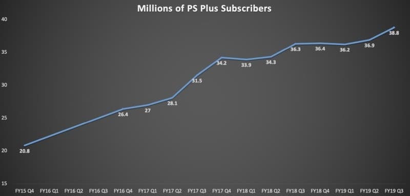 В настоящее время подпиской PS Plus пользуются 38,8 млн. пользователей PS4, что составляет около 37% от владельцев устройств. Продажи игр для PlayStation 4 также упали - с 87,2 млн. до 81,1 млн.