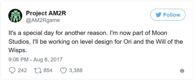 Создатель фанатского проекта Another Metroid 2 Remake Милтон Гуасти (Milton Guasti) сообщил, что отныне работает в компании Moon Studios, известной благодаря метроидвании Ori and the Blind Forest.