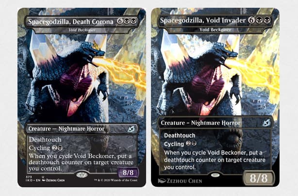 Новый сет содержит ряд карт с японскими монстрами-кайдзю, в том числе и всемирно известного Годзиллу. В целом, таких зверей 16 и одна из карт получила название – « Spacegodzilla, Death Corona» (в русском варианте Космогодзилла, Молния Смерти), связанное с атакой-дыханием «the Corona Beam».