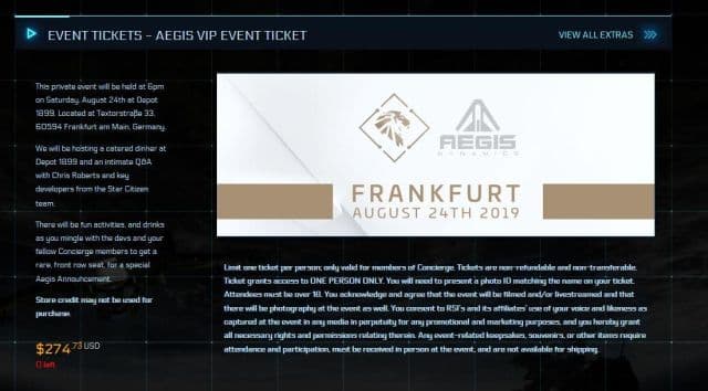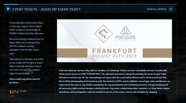 Студия Cloud Imperium Games 24 августа провела в ресторане Depot 1899 во Франкфурте встречу для поклонников. Попасть на неё могли те, кто потратил на космический проект Star Citizen от $1000. Билет на мероприятие стоил $274,73.
