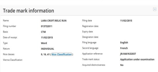 Как стало известно, компания Square-Enix закрепила за собой права на использование торговой марки Lara Croft: Relic Run, которая может указывать на название новой игры, находящейся в разработке.