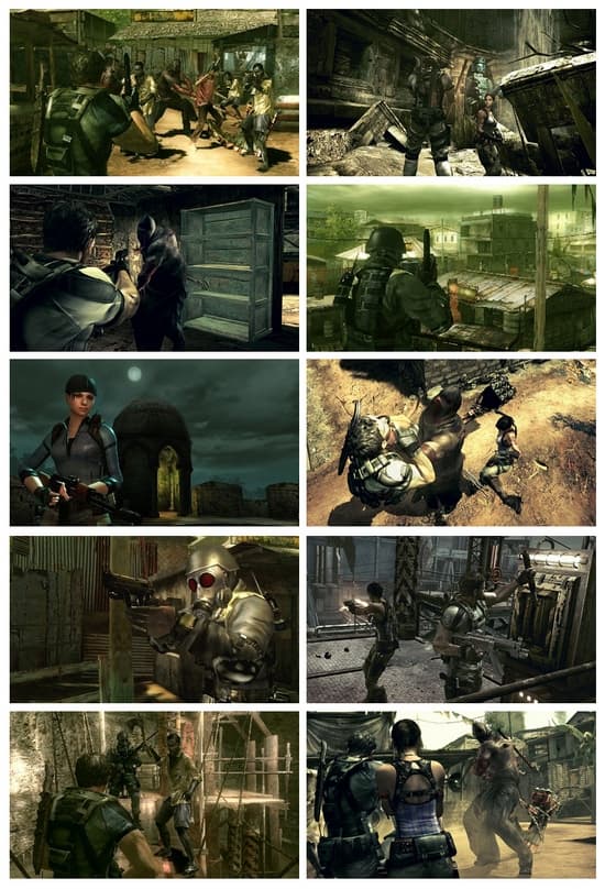 Автор подборки снизил разрешение на скриншотах Resident Evil 5, а также разместил изображения из двух игр вразброс - если не всматриваться, то не всегда сразу точно скажешь, из какой игры скриншот.