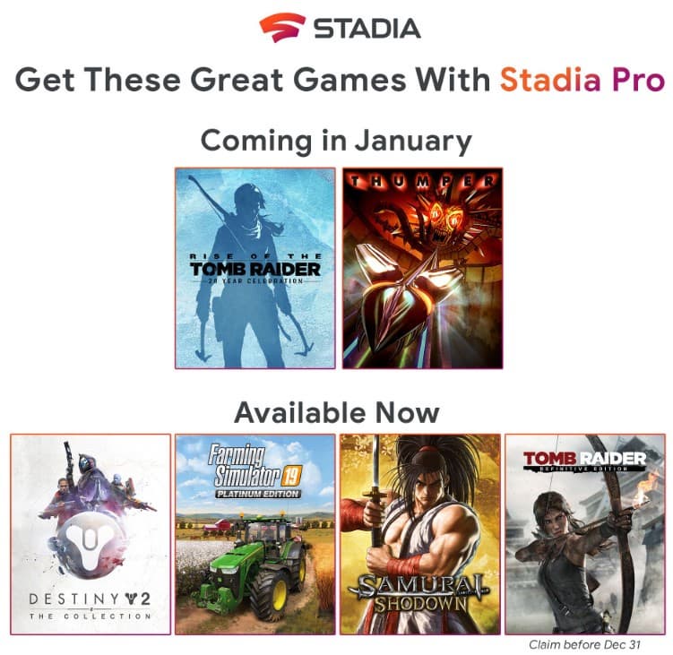 Google назвала новые игры, которые будут доступны подписчикам стримингового сервиса Stadia Pro в январе 2020 года