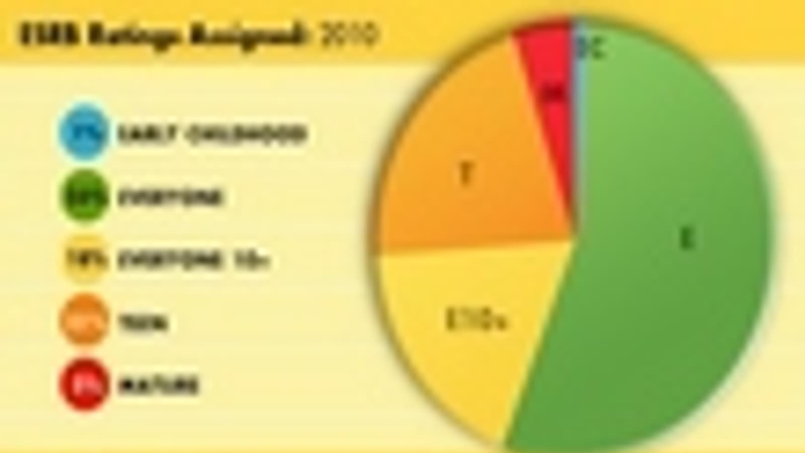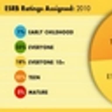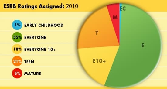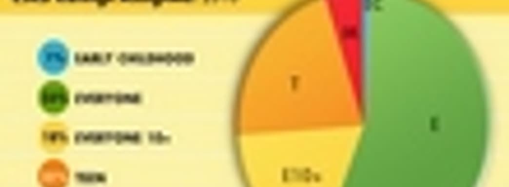 На сайте рейтинговой организации Entertainment Software Ratings Board была опубликована следующая круговая диаграмма, демонстрирующая процентное соотношение игр с различными рейтингами, вышедших в США в прошлом году.