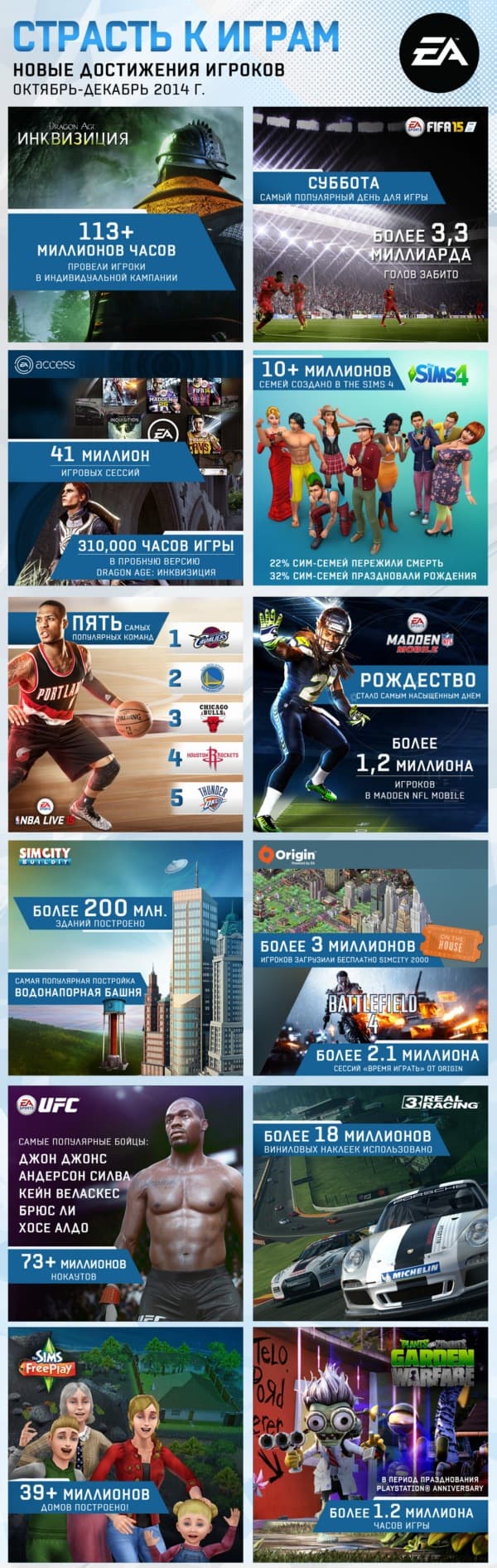 Компания ЕА опубликовала интересные факты по своим играм, на основании данных, собранных в период с 1 октября по 31 декабря 2014 года.