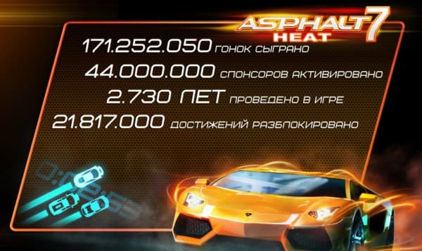 - Игроки провели в Asphalt 7 более 2730 лет