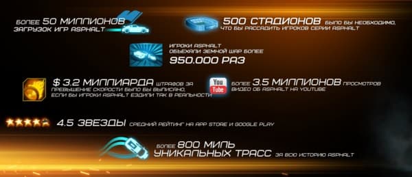 - Всего скачано более 50 миллионов копий игр серии Asphalt