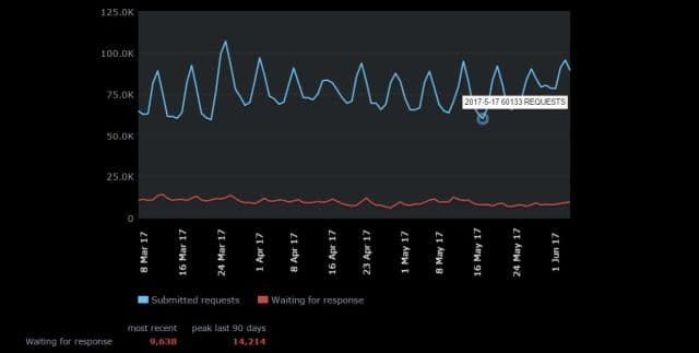 В апреле количество запросов на возврат денег в Steam превысило 50 тысяч. За месяц значение подросло до 60 тысяч, а в некоторые дни достигает и 100 тысяч. Обычное время обработки операции составляет от 49 минут до 1 часа 45 минут.